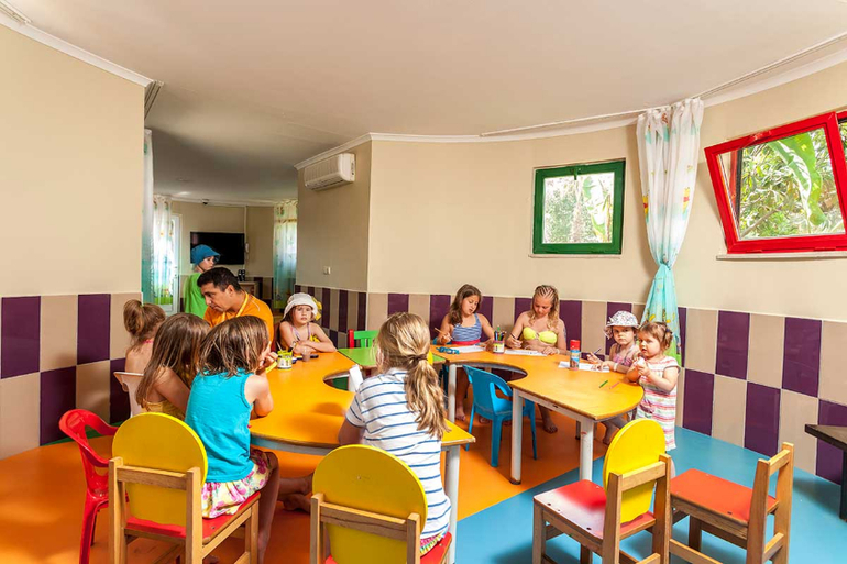 Комментарии: Мини-клуб для детей 4-7 лет. Джуниор-клуб для детей 8-12 лет, работает с с 10:00-12:00 и с 14:00-196:00. Услуги няни, по запросу, примерная стоимость 30 евро\час. Аренда детских колясок - по наличию (1 евро/день).