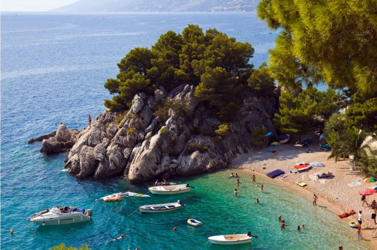 Среди них выделяется небольшой городок Брела (расположен между Макарска и Сплитом) со своим знаменитым пляжем с отшлифованной морем белой галькой Punta Rata в обрамлении сосновых и оливковых рощ. Галька очень мелкая и порой даже нет нужды в лежаках. Подступающие к прибрежной полоске пляжа сосны создают естественное укрытие от знойного солнца.