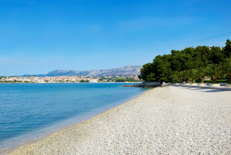 Курорт защищен Динарскими Альпами от северных ветров, череда островов не допускает к побережью штормовые волны, чистая прозрачная вода создает иллюзию отсутствия дна. Прекрасно оборудованный, с удобным спуском в море этот пляж комфортен для отдыха с детьми разного возраста