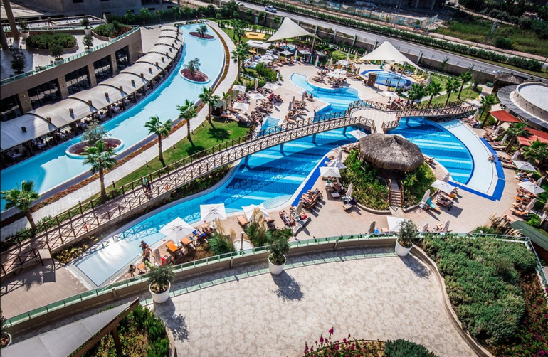 - 7 открытых бассейнов 1220, 180, 100, 730 и 77 кв.м (77 кв.м с подогревом)