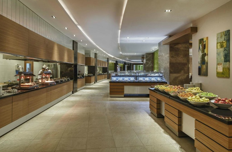 В концепцию входит: завтрак (с 7:00 до 10: 30), обед и ужин - шведский стол, закуски, гезлеме, сладости и мороженое в определенные часы, поздний ужин, диетическое и вегетарианское меню.