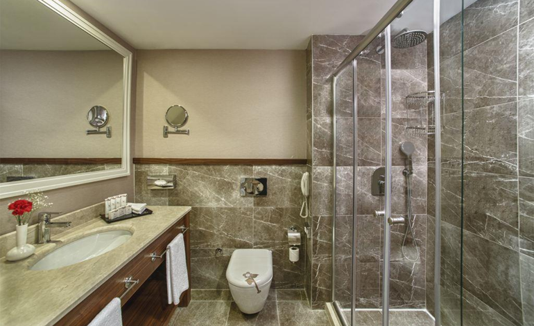 В номерах представлено: центральный кондиционер (работает в зависимости от погодных условий), мини-бар (прохладительные напитки, бесплатно, пополняется ежедневно), электрический чайник, спутниковое ТВ с российским каналом, прямой телефон, Wi-Fi (платно), душ, фен, весы, халаты/тапочки / по запросу+ бритвенные принадлежности, зубная паста и щетка, сейф (бесплатно), софа или раскладушка (по запросу), балкон (кроме Econom Room).