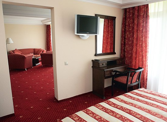 Все номера оборудованы пожарной сигнализацией, оснащены входными электронными замками, стеклопакетами, системой кондиционирования, ЖК-телевизором, холодильником, феном, сейфом, телефоном.