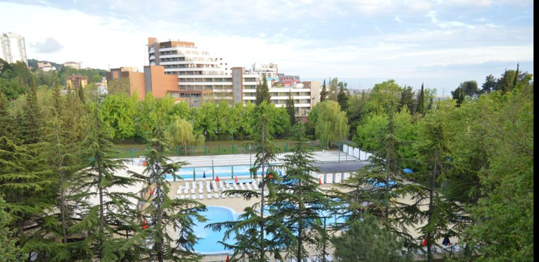 Пляж: оборудованный и благоустроенный песчано-галечный пляж находится в шаговой доступности от корпусов. На его территории расположен новый спортивно-оздоровительный комплекс.