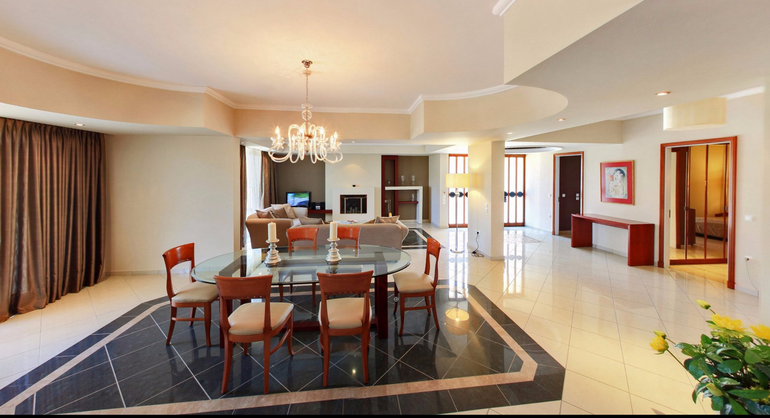 - Senior presidential suite включает 3 комнаты, от которых веет престижем и властью. В апартаментах есть просторная гостиная с камином, элегантными диванами, обеденной зоной на шестерых и эксклюзивное лобби.