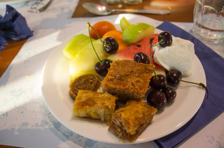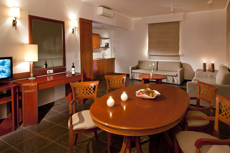 ресторан Atrium предлагает блюда греческой и местной кухонь, домашние десерты. Требуется предварительное бронирование за один день.