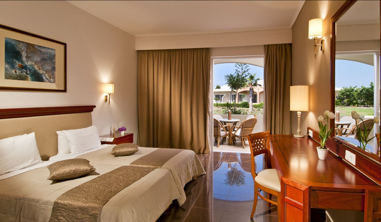 - Стандартные двухместные номера с видом на море, сад или бассейн. Номера оборудованы двуспальной кроватью с возможностью дополнительной кровати ребенку или детской кроватки;