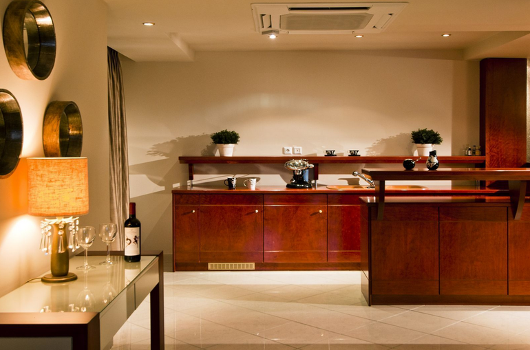 - Junior presidential suite - две спальни, гостиная с камином, столовая, мягкие диваны и изумительная деревянная мебель. А также просторная спальня с мягкой двуспальной кроватью, королевская, отделанная мрамором ванная комната с отдельно стоящими ванной и джакузи. Рассчитан на проживание до 4х человек. Предоставляются халаты и тапочки, а также фирменные туалетно-косметические принадлежности.