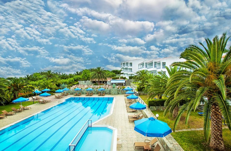Отель расположен напротив великолепного пляжа, из окон номеров открывается потрясающий вид на Эгейское море и гору Олимп. На п-ве Кассандра (Халкидики) в пос. Посиди, в 92 км от аэропорта г. Салоники.