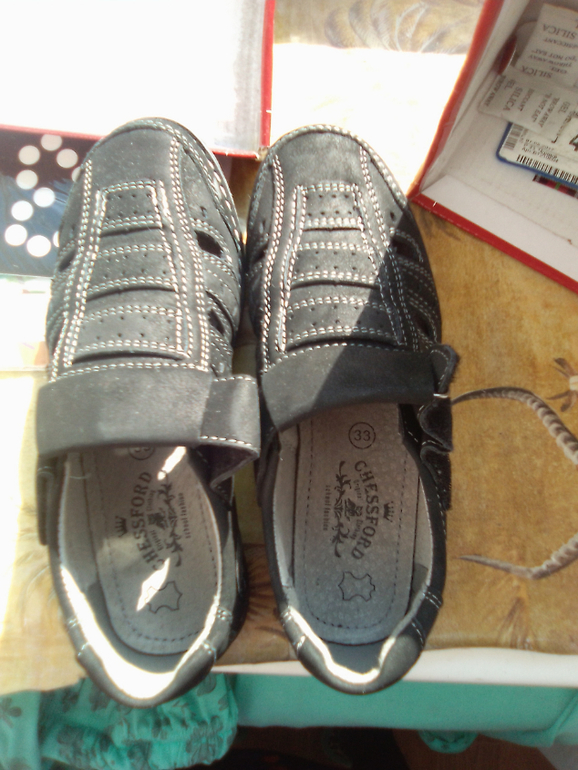 1)Новые школьные туфли.Купили весной,а осенью не влезли.Размер 33,на узкую ногу.Цена была по акции 1500.отдаю за 800