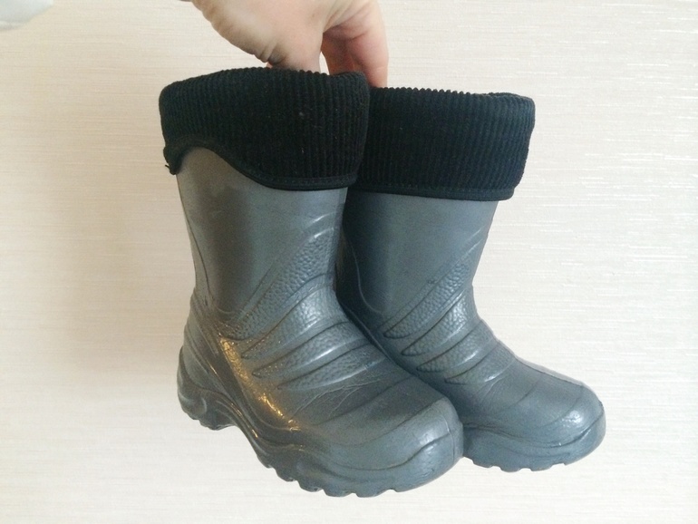 Цвет серый, размер 24-25, состояние хорошее. С флисовым внутренним сапожком можно носить до -10, без него - даже летом. Легкие и очень удобные, намного лучше резиновых. Возможна почта.