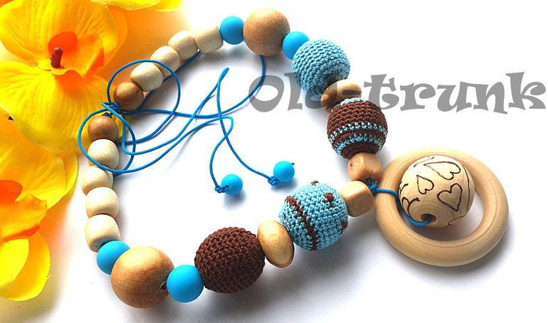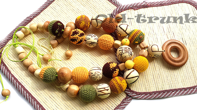 Слингобусы ЖирафЫ. Можжевельник, дерево, хлопок, жевательный силикон, надпись абсолютно безопасна, не краска - пирография.
