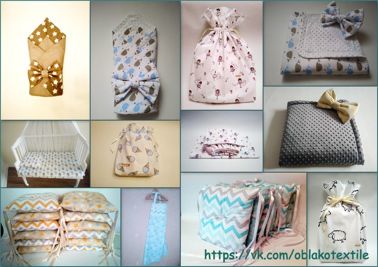 ДД! С удовольствием изготовлю для вас комплекты детского постельного белья, бортики, конверты на выписку и др.! Есть в наличии несколько комплектов. Подробно можно посмотреть в группе ВК. Комплекты постельного белья с простыней на резинке от 1300 руб, комплект постельного белья с бортиками-подушками от 3300 руб, конверты от 1000 руб. Самовывоз, ТК, почта.