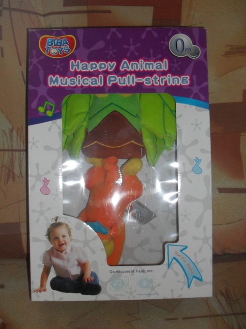 Веселая игрушка-обезьянка размером 36 см для самых маленьких. Обезьянка свисает с дерева, на котором растут три кокоса. Если ребенок потянет за игрушку, то услышит красивую мелодию и увидит, как весело станут мигать кокосы на дереве. Благодаря специальному креплению на липучках игрушку можно прикрепить к кроватке или прогулочной коляске малыша.