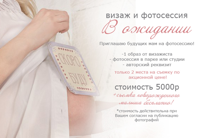 Также Вы получите в подарок фотосессию Вашего новорожденного малыша (до 2 недель) с авторскими аксессуарами и реквизитом.