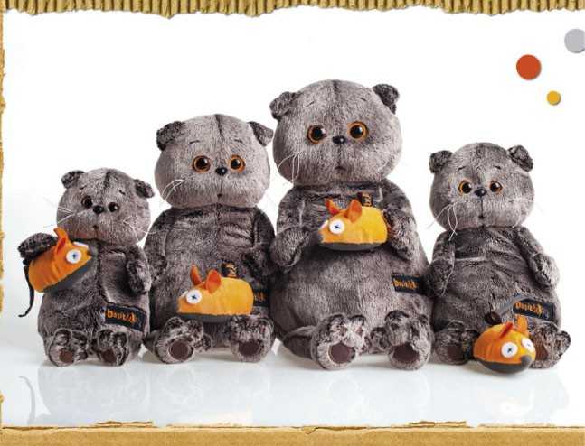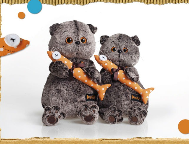 Игрушка-друг Кот Басик и мышка (25 см, 900 р.), Кот Басик и карасик в пакетике (22 см, 900 р.), Кот Басик и килька в горошек (25 см, 900 р.).