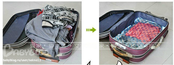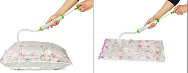 Увеличить пространство в шкафу можно с помощью вакуумных пакетов. Положите одежду в пакет и обычным пылесосом высосите воздух. Объём вещей значительно уменьшится - до 80 %; кроме того, они будут надёжно защищены от влаги, сырости, пыли, пятен, плесени, моли, обесцвечивания и посторонних запахов.