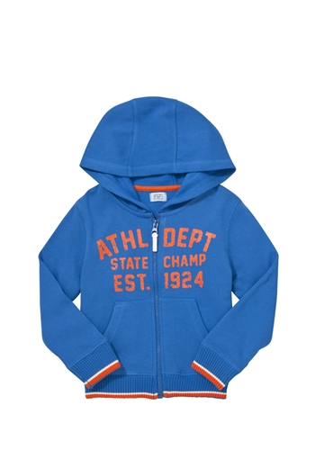 Толстовка с капюшоном ярко-синяя фирмы F&F. Внутри с небольшим начесом, салатовая молния, отделка контрастным цветом по низу и манжеты, 2 кармана впереди, на груди надписи. Состав 100% хлопок. Размер 12-18мес(80-86), 18-24мес (86-92) 590руб