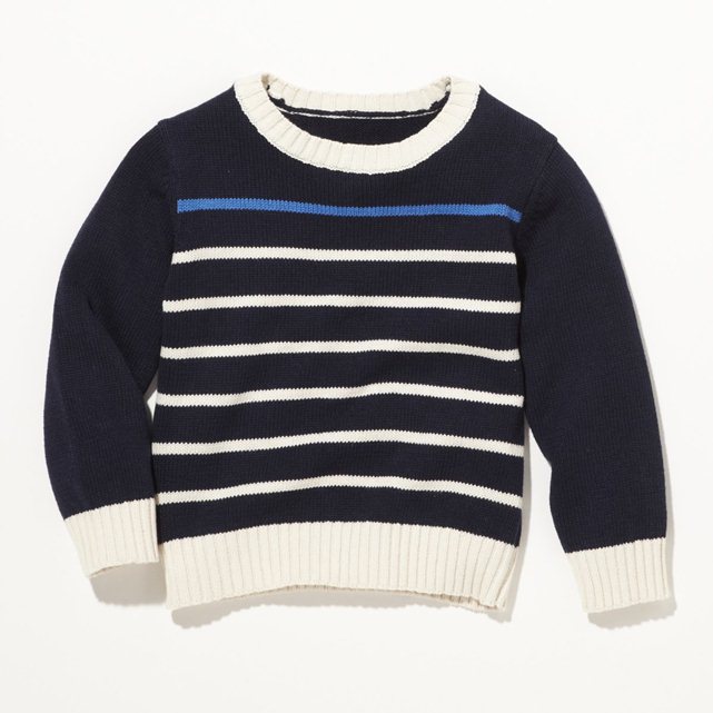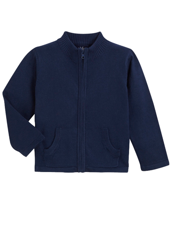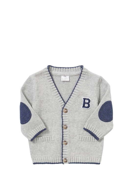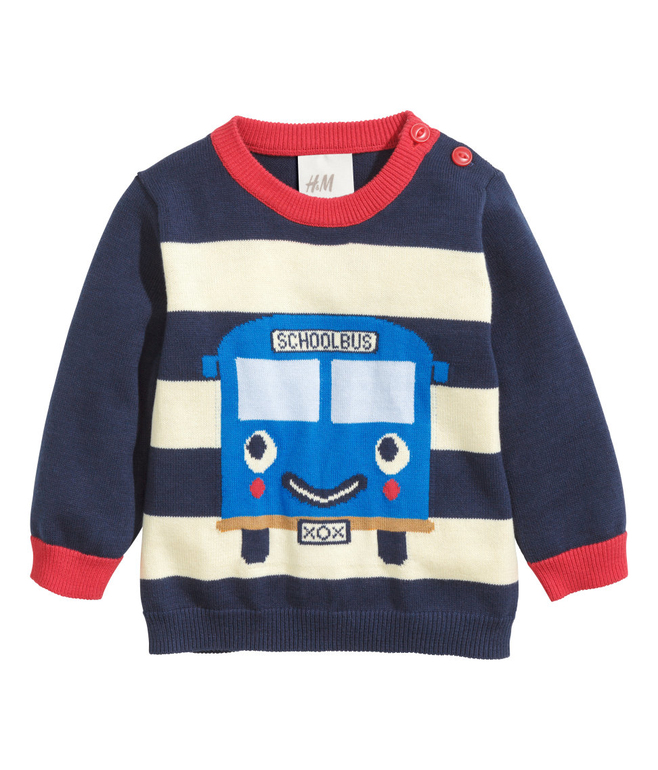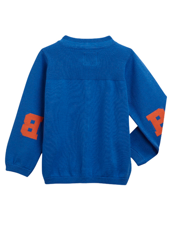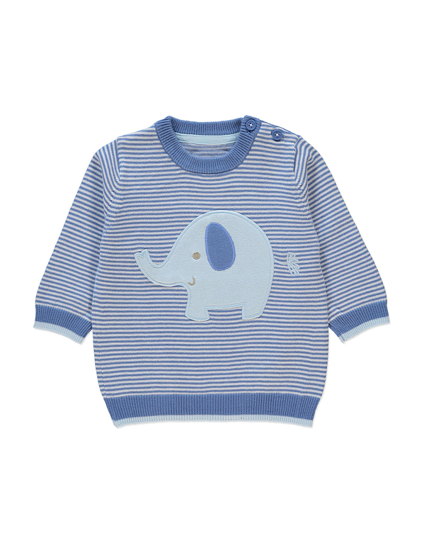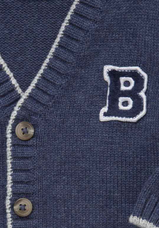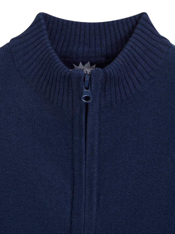 Джемпер вязаный фирмы F&F. Темно-синие и синие полоски, кармашек на груди, декоративные заплатки на локтях. Состав 100% хлопок. Размеры 1,5-2г (86-92)
