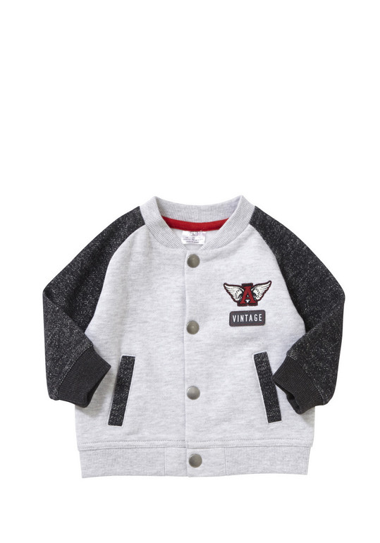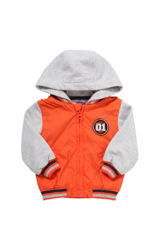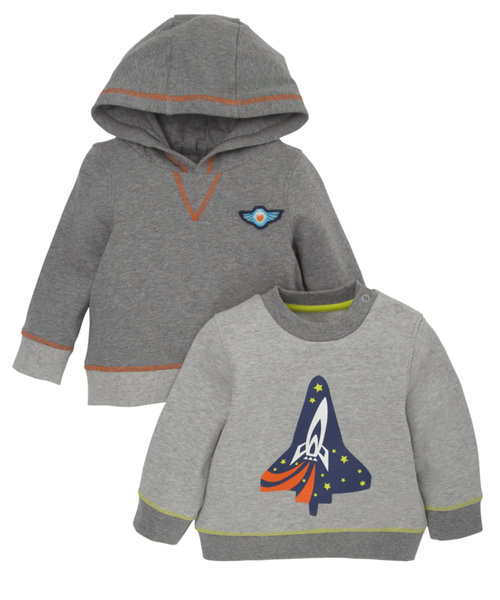 Толстовка с капюшоном серая фирмы F&F. Внутри с небольшим начесом, синяя молния, отделка контрастным цветом по низу и манжеты, 2 кармана впереди, на груди надписи. Состав 100% хлопок. Размер 12-18мес(80-86), 18-24мес (86-92) 590руб