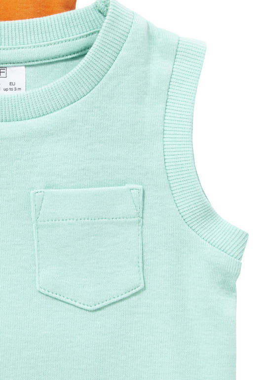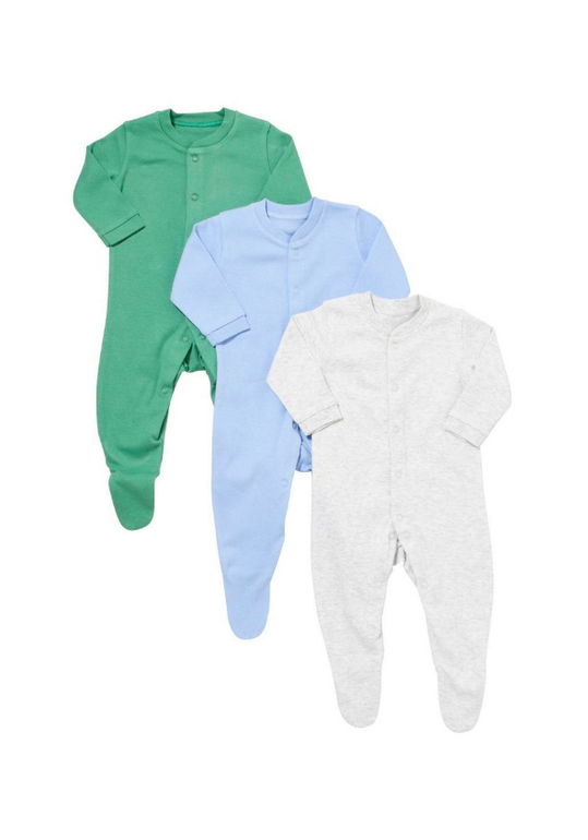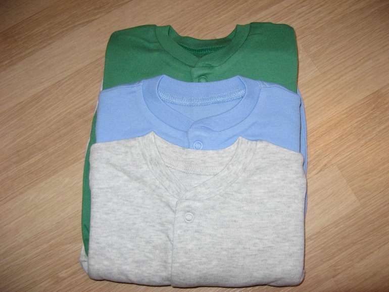 Комплект из 3х слипов фирмы F&F. Мягкий трикотаж, манжеты на рукавах, полностью расстегиваются-застегиваются на кнопках, серый, голубой, зеленый. Состав 100% хлопок, размеры 0-1мес (56см),