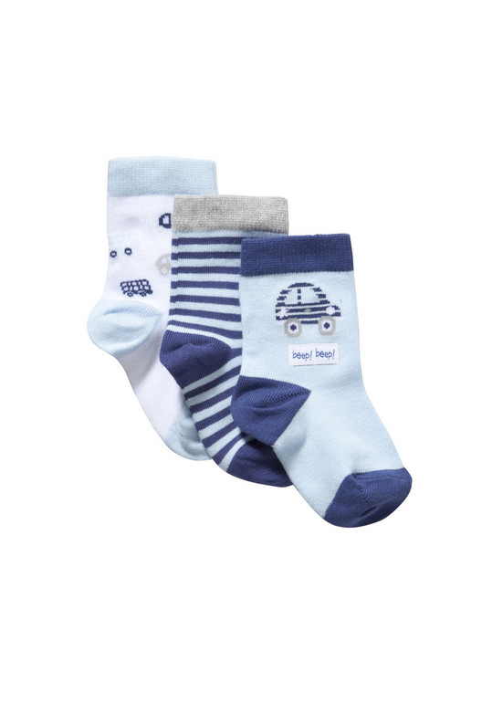 Носки фирмы F&F 3штуки в комплекте. В полоску и однотонные с рисунками машинки. Состав Состав 70% хлопок, 29% нейлон, 1% эластан. размер (0-6мес)* 350руб