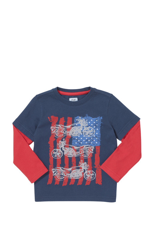 Красная кофточка с Пиратом на груди и надписями + синие штанишки.
