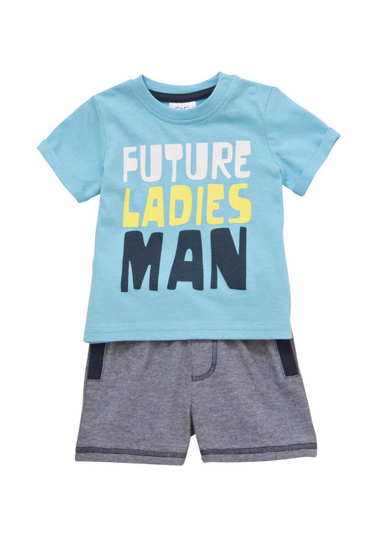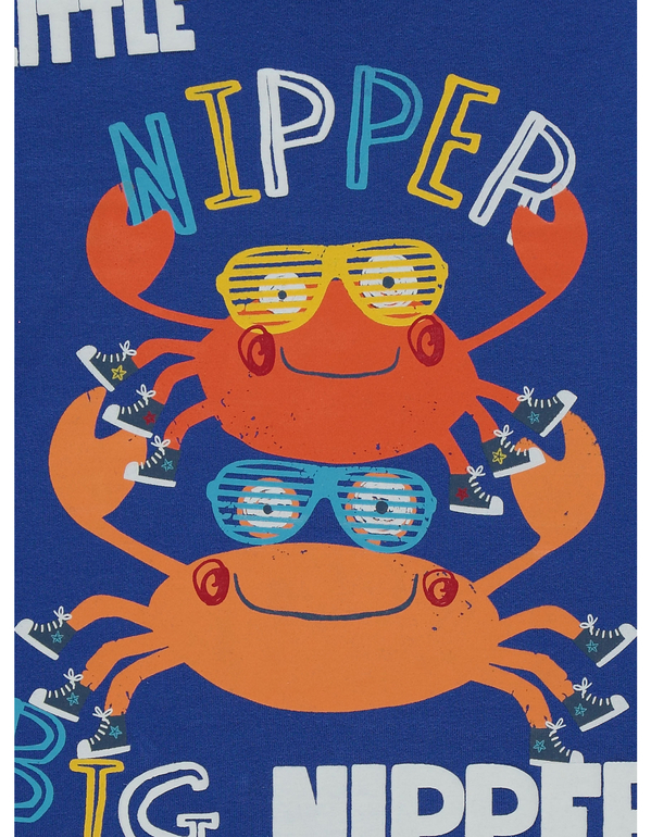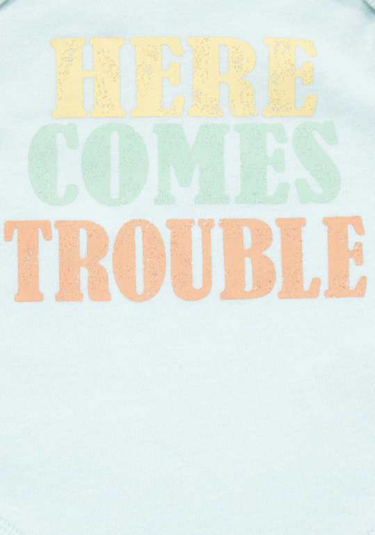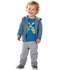 Голубая кофточка с надписями и рисунком Пират на корабле + голубые штанишки
