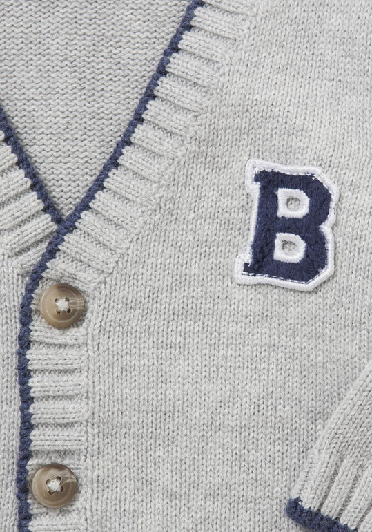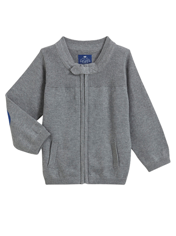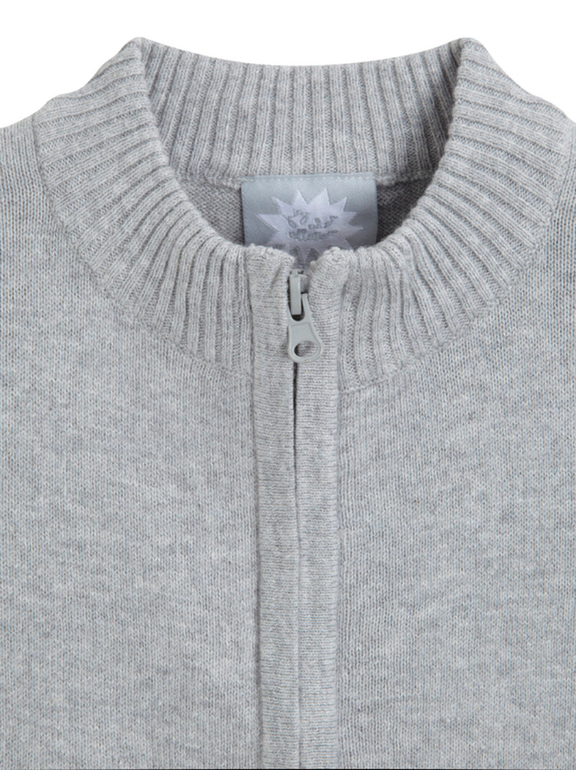 Кофта вязаная фирмы F&F. Серая, с голубыми и темно-синими полосками, рукава серые, застежка-молния под горло. Состав 100% хлопок, Размер 1,5-2г(86-92) 690руб