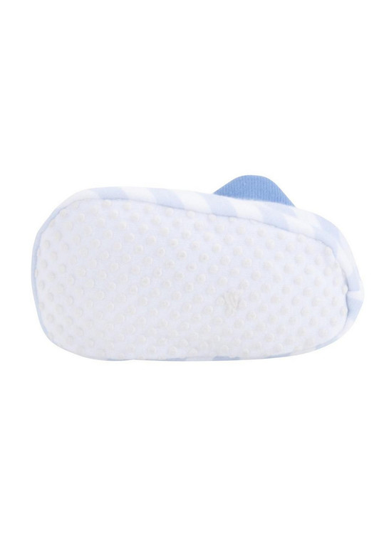 Пинетки фирмы F&F. Белые из двухслойного трикотажа с голубой отделкой и объемной аппликацией Тату Тедди. Подошва имеет противоскользящие точки. Состав 100% хлопок, размер. 3-6мес, 6-12мес, 12-18мес 250руб