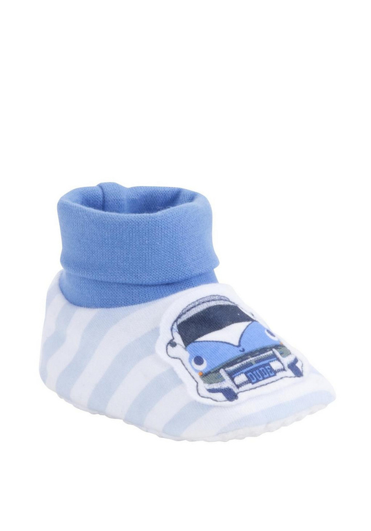Пинетки фирмы F&F. Белые из двухслойного трикотажа с синей отделкой и аппликацией Машинки. Подошва имеет противоскользящие точки. Состав 100% хлопок, размер. 3-6мес, 6-12мес 200руб