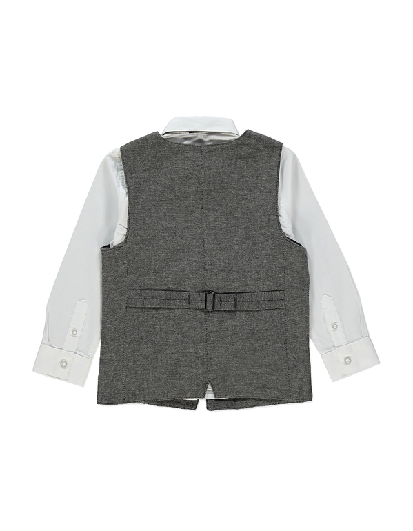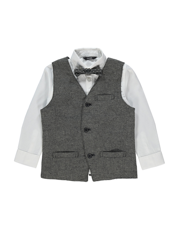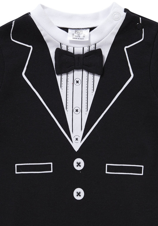 Комбинезончик-фрак фирмы F&F. Обычной толщины трикотаж , черный, внизу расстегивается-застегивается на кнопках. Впереди рисунок рубашка и пуговички, бабочка из ткани пришита. Состав 100% хлопок, размеры 9-12мес(74-80), 12-18мес (80-86), 18-24мес *(86-92). 650руб.