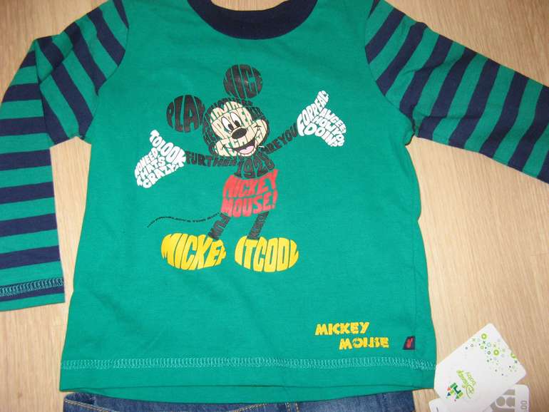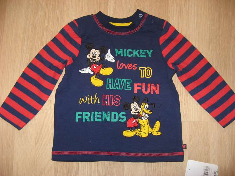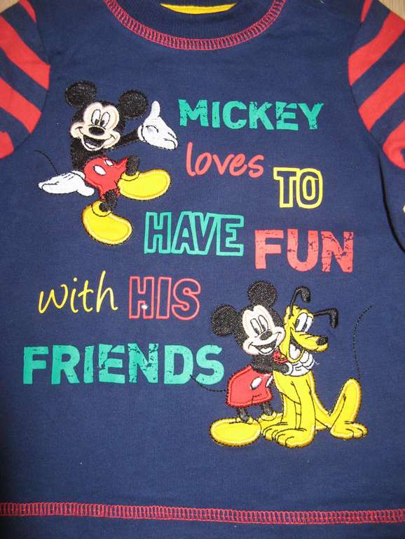 Флисовый слип фирмы George. Флис мягкий, полностью на кнопках с верху до низа, темно-синий с синим рисугком, аппликация Микки Маус впереди. размеры 0-3мес(56-62), 3-6мес (62-68), 690руб