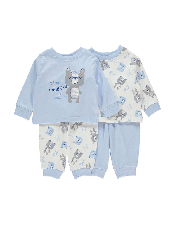 Пижама с длинным рукавом фирмы George, манжеты на рукавах и штанишках. Белая кофточка с надписями и мишками + голубые штанишки