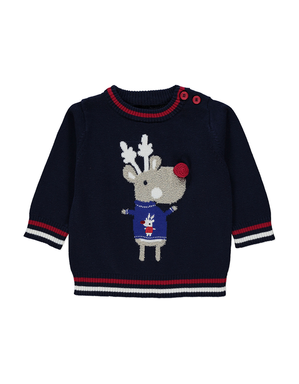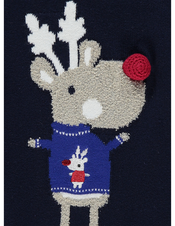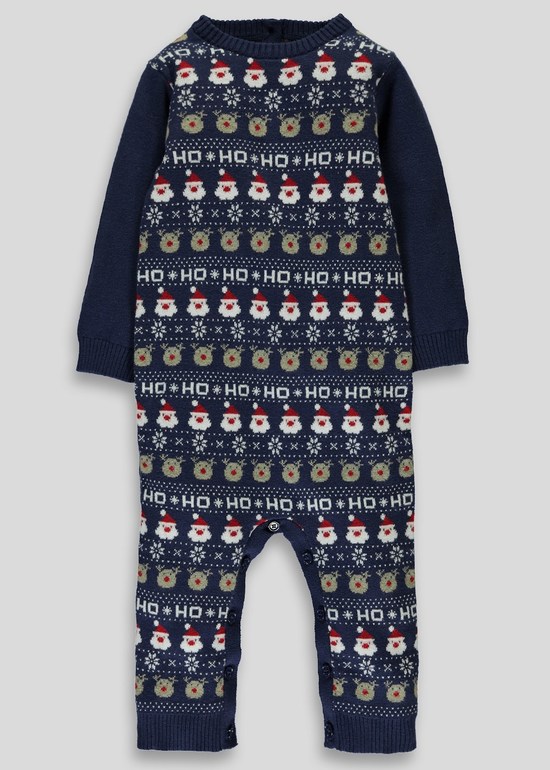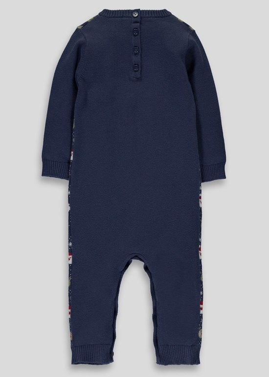 Комбинезончик вязаный фирмы Matalan. Темно-синий с новогодними рисунками по всему комбинезону. Застежка 4 пуговички на спине, внизу расстегивается-застегивается на пуговичках. Состав 100% хлопок. размеры 3-6мес (62-68), 6-9мес (68-74), 9-12 (74-80). 750руб.