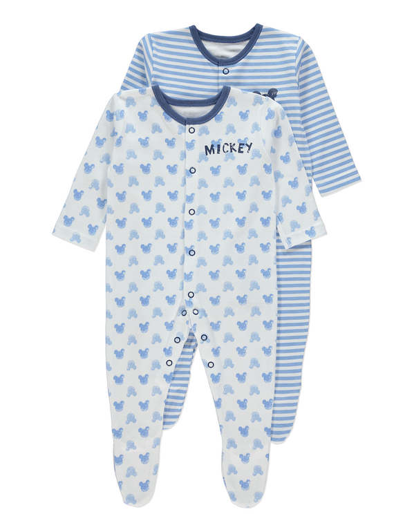 Комплект из 2х слипов фирмы George. Белая-голубая полоска, рисунок Микки на груди и белый с голубыми Микки Маусами по всему слипу. Полностью застегивается-расстегивается на кнопках. Состав 100% хлопок, размеры 12-18мес (80-86) Комплект из 2х слипов 790руб.