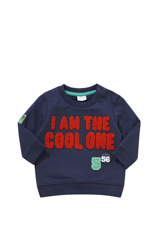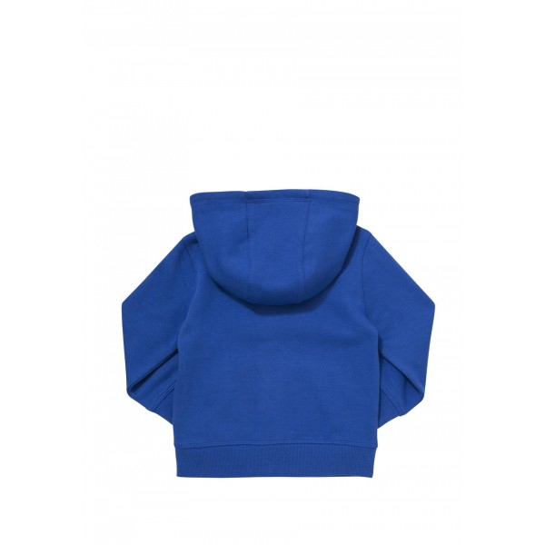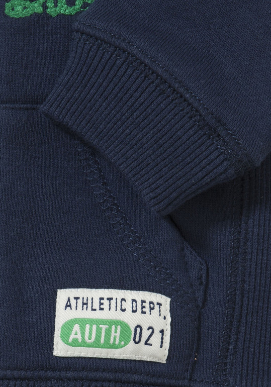 Толстовка с капюшоном фирмы t-a-o (Tape à l'oeil) Франция. Синяя, плотный мягкий трикотаж, внутри с небольшим начесом, 2 кармана впереди, на груди бархатистая надпись, капюшон внутри с серой трикотажной подкладкой. Состав 60% хлопок, 40% полиэстер. Размер 12-18мес (86) 650руб