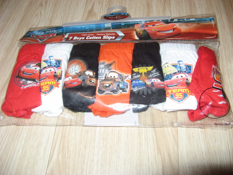 Трусы фирмы Disney Тачки 7штук в комплекте. Красные, белые, оранжевые, черные с машинами из мультика Тачки. состав 100% хлопок. Размеры 18-24мес(86-92) 590руб