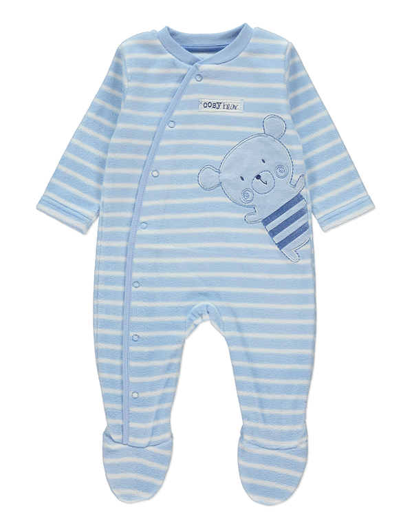 Флисовый слип фирмы George. Флис мягкий, полностью на кнопках с верху до низа, голубой с белыми полосками, аппликация Медвежонок впереди. размеры 0-3мес(56-62), 3-6мес (62-68), 690руб