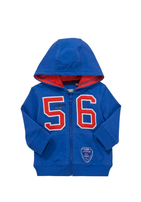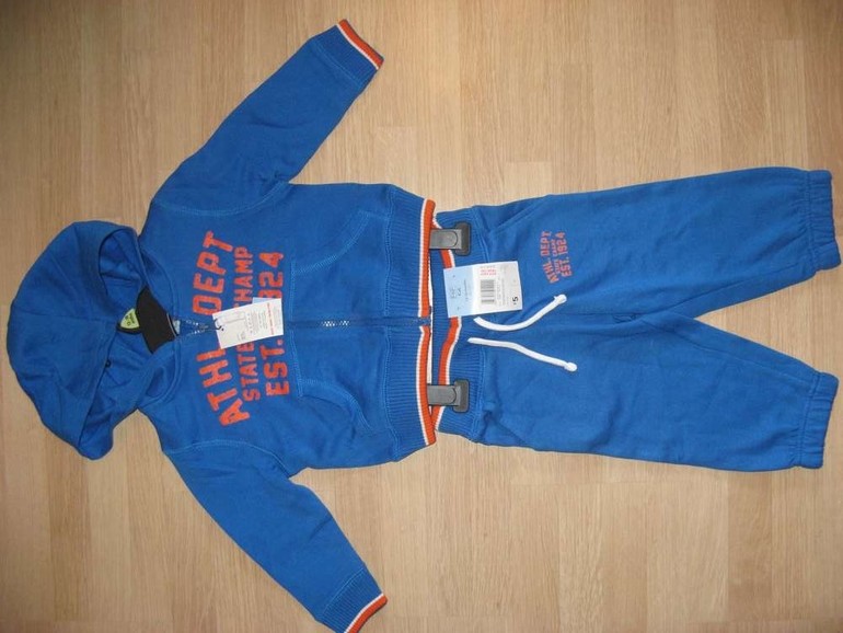 Кофта-худи с капюшоном фирмы F&F. Плотный трикотаж внутри с небольшим начесом. Синего цвета, 2 кармана впереди. Состав 60% хлопок, 40% полиэстер. Размеры 1-1,5г (80-86), 550руб.