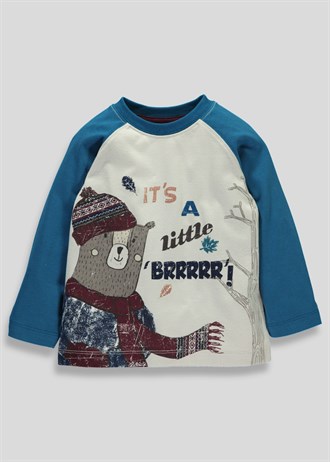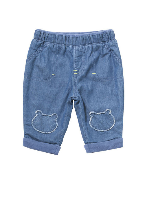 Голубая кофточка с большим мишкой на груди и надписями + штанишки белые с мишками.
