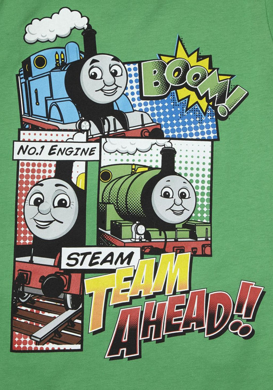 Пижамка или комплектик трикотажный фирмы F&F. Темно-синие шорты на резинке и футболочка зеленая с Паровозиком Томасом. Состав 100% хлопок. р.12-18м (80-86), 500руб