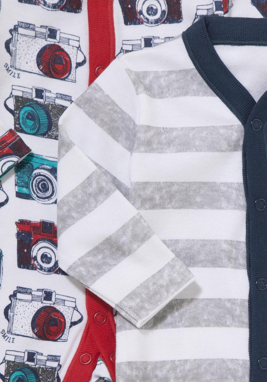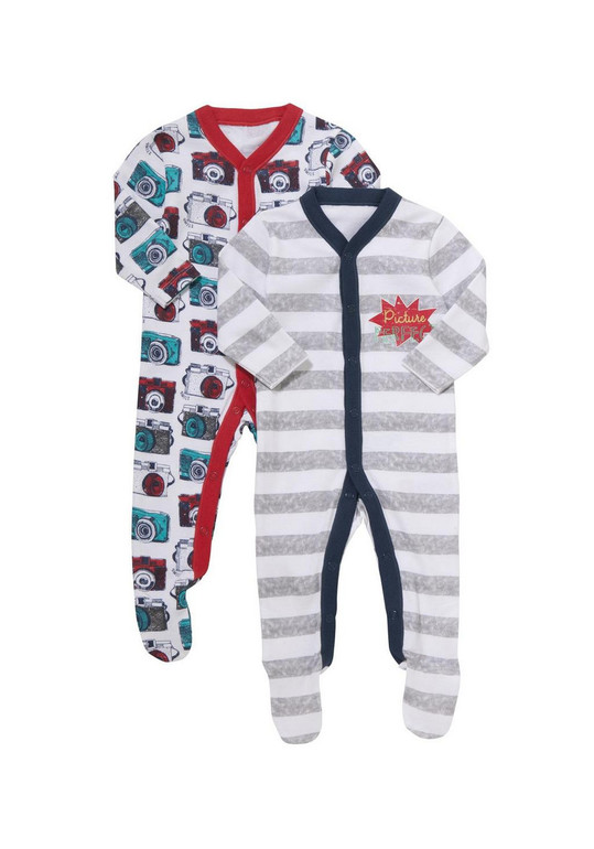 Комплект из 2х слипов "Фото" фирмы F&F . Мягкий трикотаж, полностью расстегиваются-застегиваются на кнопках, белые серые полоски и синей отделкой, белый с красной отделкой, рисунок фотоаппараты по всему слипу. Состав 100% хлопок, размеры 0-1мес (56см), 3-6мес (62-68), 6-9мес (68-74) Комплект из 2х слипов 750руб