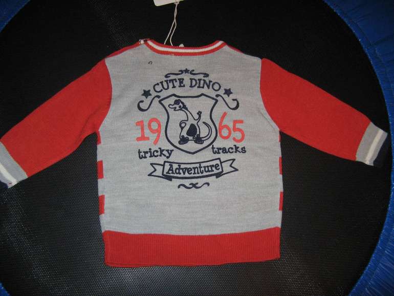 Яркий джемпер фирмы F&F. Темно-серые, салатовые, серые полоски. Состав 100% хлопок. Размер 1-1,5г (80-86), 1,5-2г(86-92) 650руб.