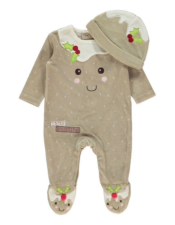 Комплект Вкусняшка комбинезончик велюровый + шапочка фирмы George. Кремовый, впереди вышивка, застегивается на кнопки между ног и на спине. Состав 76% хлопок, 24% полиэстер размеры 3-6мес (68-74), 6-9мес (68-74), 9-12мес (74-80), 12-18мес (80-86) 690руб.