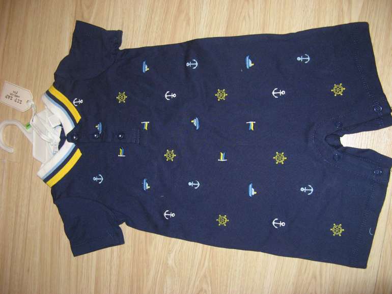 Комбинезончик+ шапочка Пират фирмы George. Слитный, сделан в виде кофточки, жилета с черепом и пуговицами и штанишек. Внизу расстегивается-застегивается на кнопках. + шапочка с черепом.Состав 100% хлопок. размеры 3-6мес (62-68), 6-9мес (68-74). 850руб.