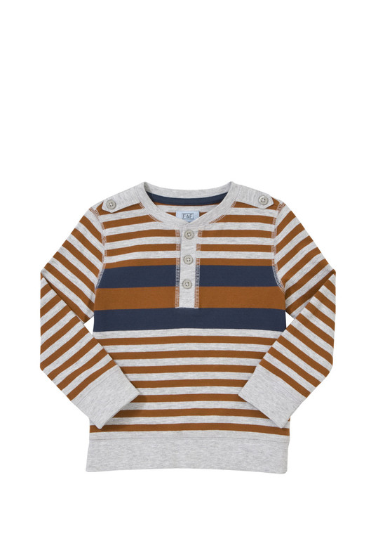 Кофточка с длинным рукавом в полоску фирма F&F. Серая с коричневыми и синими полосками, на груди застежка