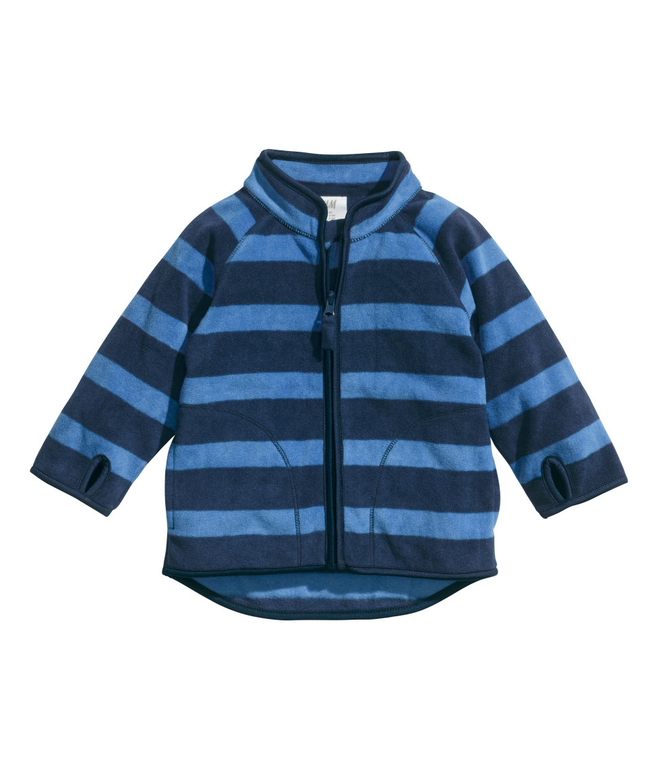 Флиска фирмы H&M. Расцветка голубые-темно-синие полоски, застежка-молния, воротничок стойка. На рукаве прорезь для большого пальчика, чтобы не задирался рукав. Состав 100% полиэстер. Размер 9-12мес(74-80), 18-24мес (86-92) 590руб.