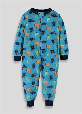 Флисовый слип фирмы Matalan. Флис мягкий, полностью на молнии с верху до низа, хлястик на шее закрывает замочек молнии, на рукавах и ножках трикотажные манжеты, ярко-голубой с рисунками Роботы. размеры 12-18мес (80-86), 18-24мес (86-92) 690руб
