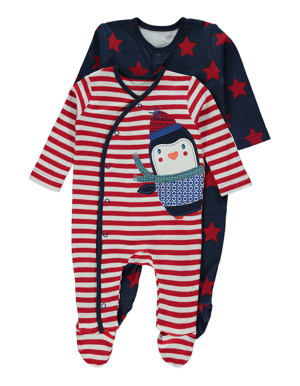 Комплект из 2х слипов фирмы George. Синий с красными звездами + красный с большой аппликацией Пингвиненок впереди. Состав 100% хлопок, размеры 0-3мес (56-62), 3-6мес (62-68), 6-9мес (68-74), 9-12мес (74-80) Комплект из 2х слипов 850руб.
